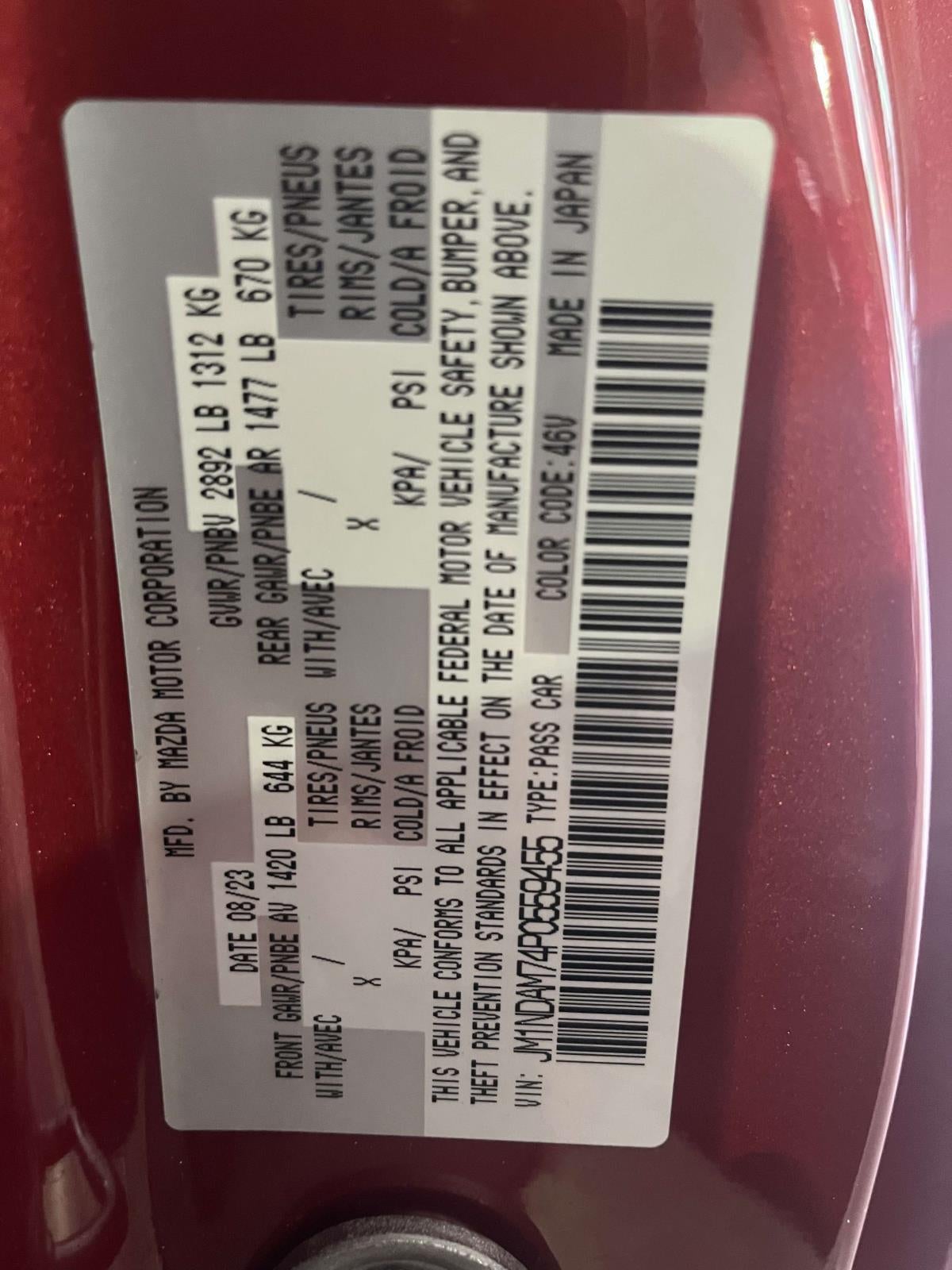 - Vehicle Name: Mazda MX-5 Miata RF